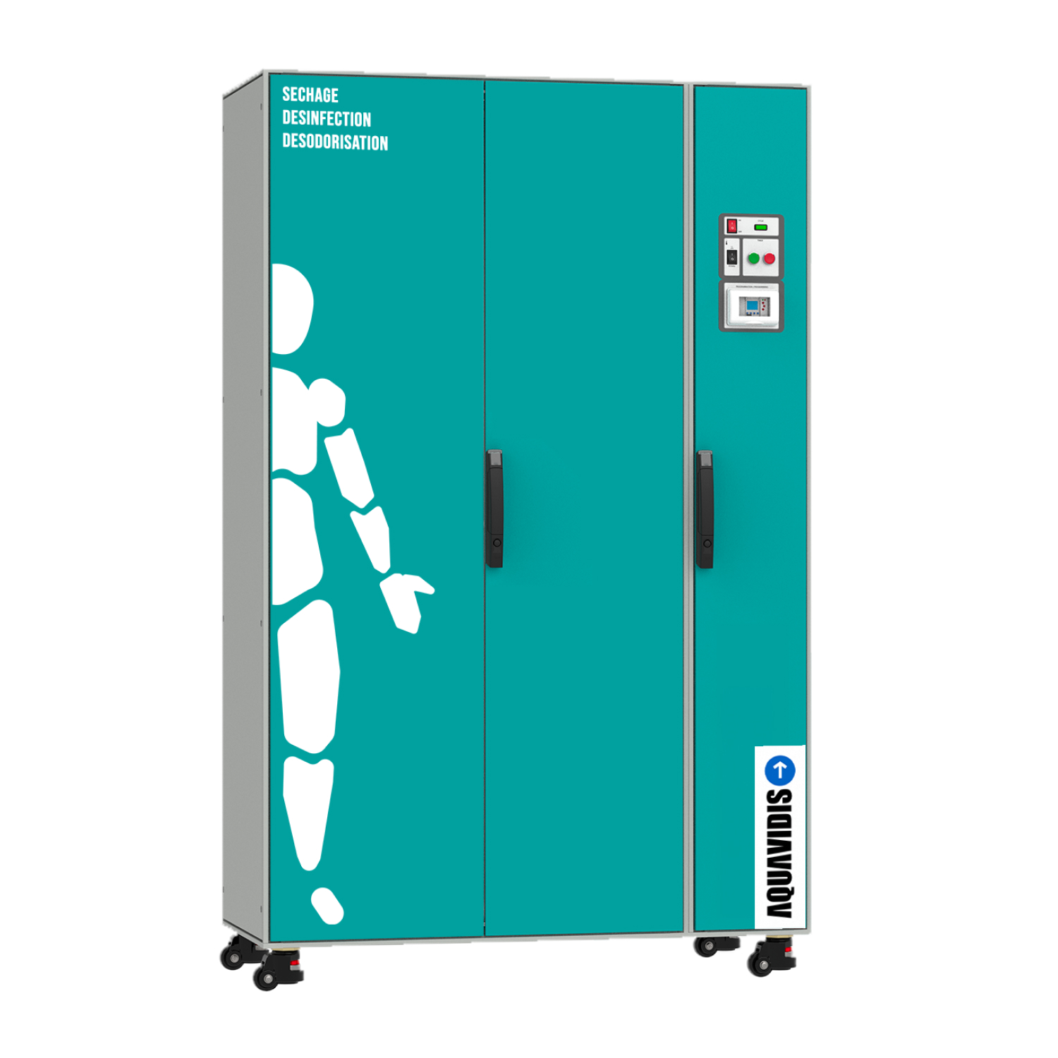 L’HYGIstore Mask offre un traitement complet en trois étapes : séchage, désinfection et désodorisation. Le séchage élimine l’humidité pour un confort optimal. La désinfection utilise l’ozone pour éliminer les agents pathogènes sans produits chimiques. Enfin, la désodorisation réduit les mauvaises odeurs tout en préservant la qualité des équipements. Aussi, vous prolongez la durée de vie de vos équipements et réalisez donc des économies pour votre entreprise.