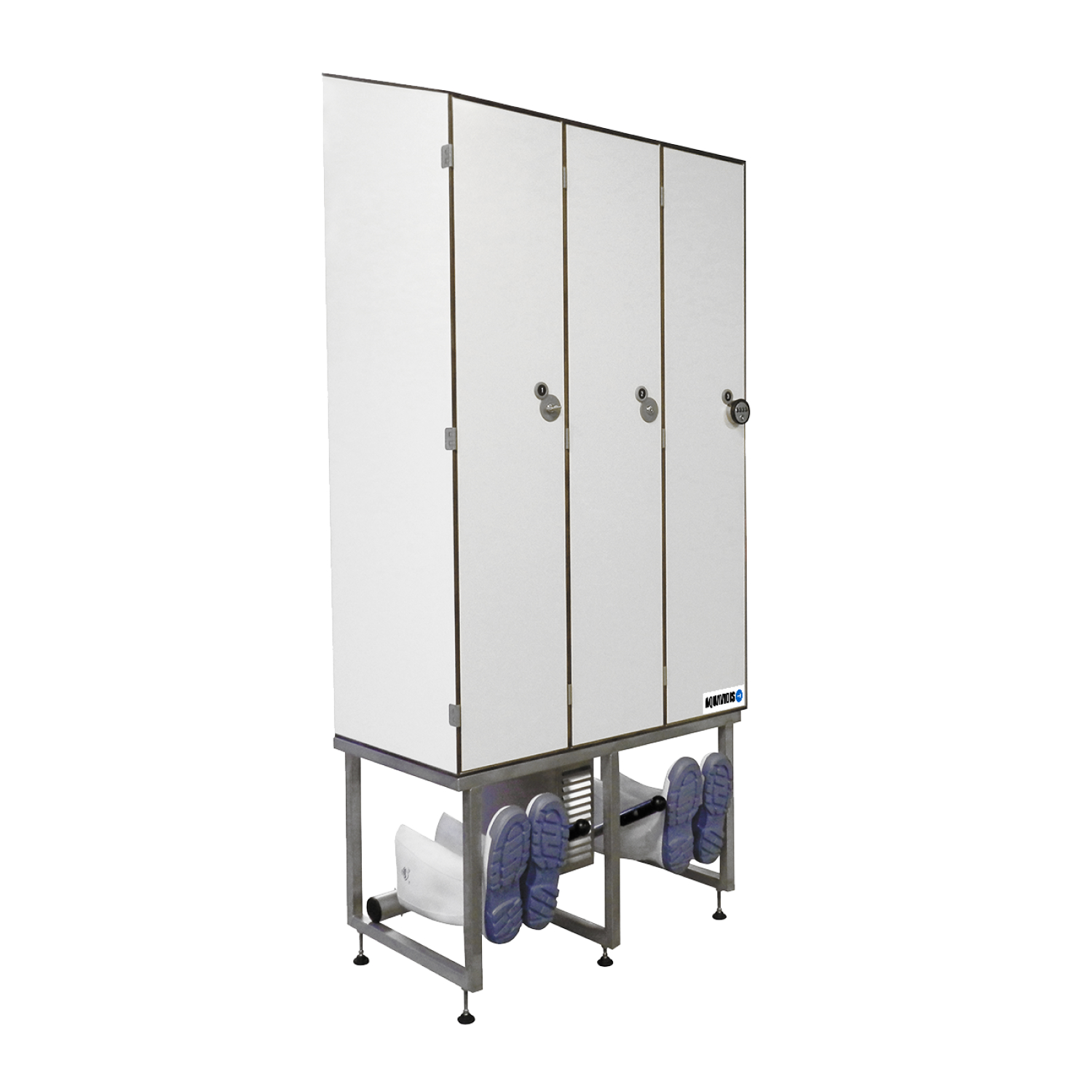 L’armoire stratifié compact HYGIstrat est une solution innovante qui allie les qualités du stratifié compact avec la technologie HYGIfeet pour le séchage et la désinfection des bottes et des chaussures. Elle est spécialement conçue pour répondre aux besoins des professionnels et des industriels, notamment dans les secteurs de l’agroalimentaire et de la restauration collective. Cette armoire traite une large gamme d’équipements, y compris les gants PU, gants de protection, gants en néoprène, gants de boxe, gilets de haute visibilité, gilets ordinaires, vestes, bermudas, pantalons, salopettes, combinaisons, bottes et chaussures de sécurité hautes, ainsi que les casques, blouses et accessoires de sport.